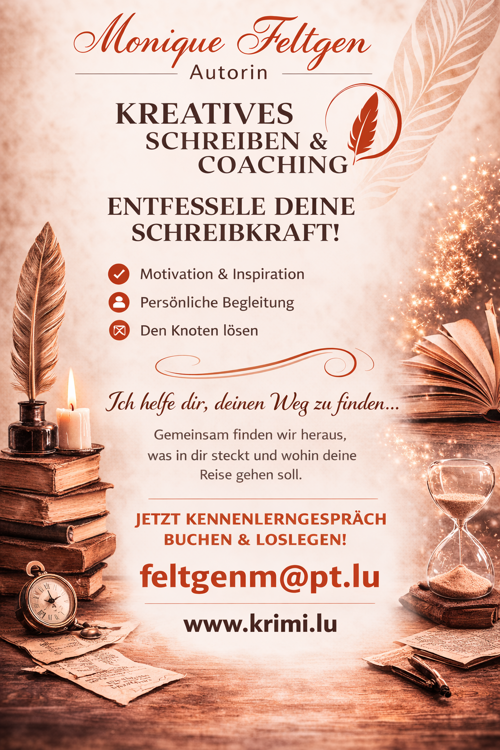 Ich begleite dich dabei, deine Gedanken zu sortieren, deine Idee weiterzuentwickeln und Schritt für Schritt in eine klare Form zu bringen.